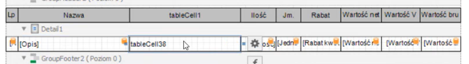 W szablonie wydruku należy wstawić nową kolumnę w nazwach kolumn i nową kolumnę w wierszach.