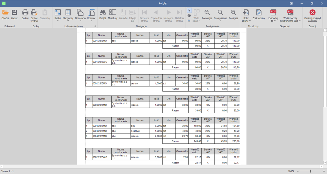 Po edycji szablonu, wydruk prezentuje się w ten sposób.