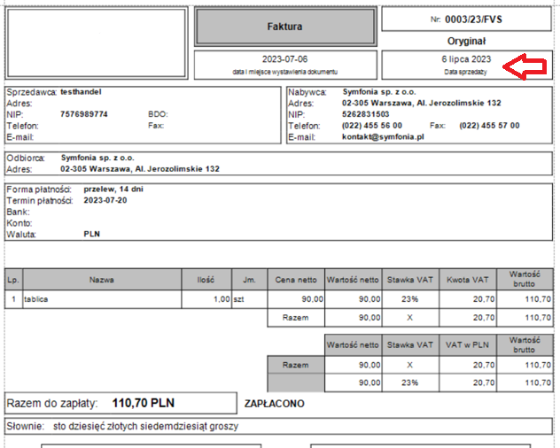 Na nowym wydruku dokumentu wyświetlany jest okres sprzedaży zamiast daty sprzedaży.