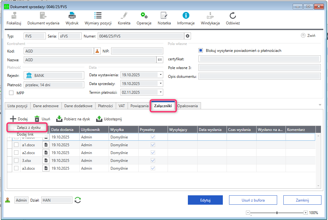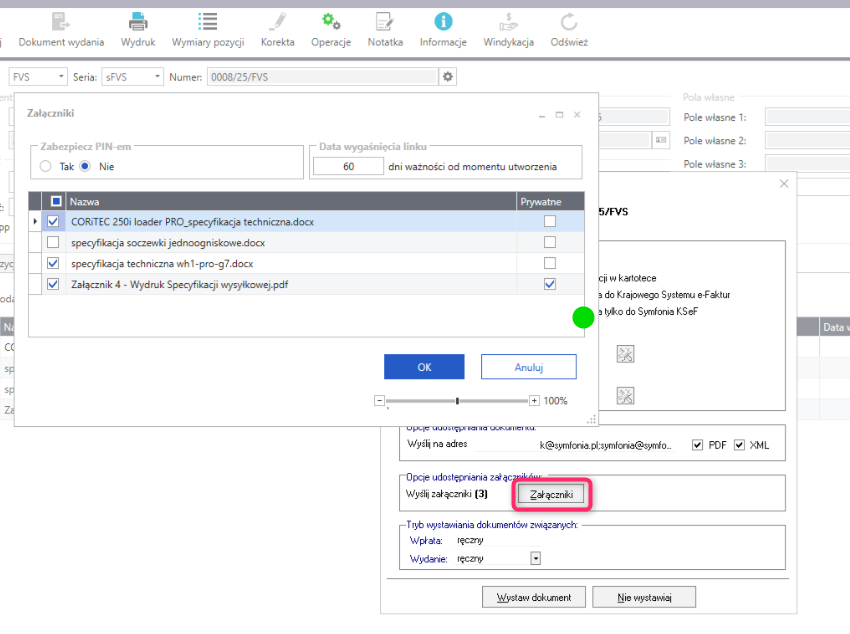 Aby dokonać udostępnienia załączników w wystawianym dokumencie sprzedaży wykonaj poniższe czynności. ]