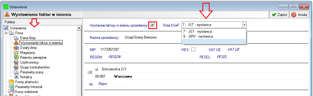 Obsługa wystawiania faktur w imieniu sprzedawcy dla JST (Jednostki Samorządu Terytorialnego) i GRV (Grupa Vat).