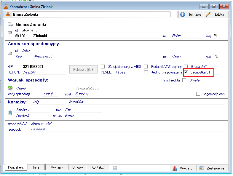 W programie Symfonia Handel w kartotece kontrahentów dodano parametr Jednostka ST, który oznacza kontrahenta jako Jednostkę Samorządu Terytorialnego (JST).