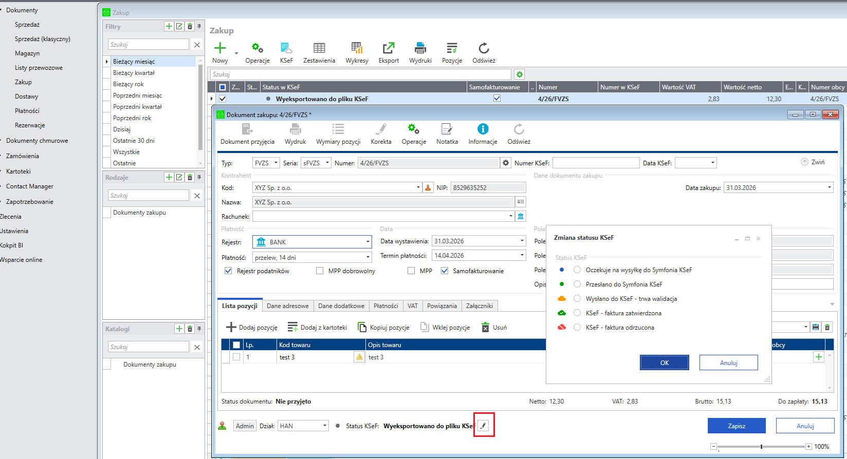 - KSeF - faktura zatwierdzona