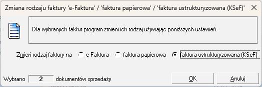 - Zaznacz opcję faktura ustrukturyzowana (KSeF) i naciśnij OK