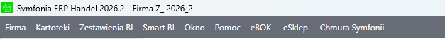 Na samej górze okna znajduje się pasek tytułu, na którym widoczna jest wersja programu oraz nazwa aktualnie otwartej firmy.