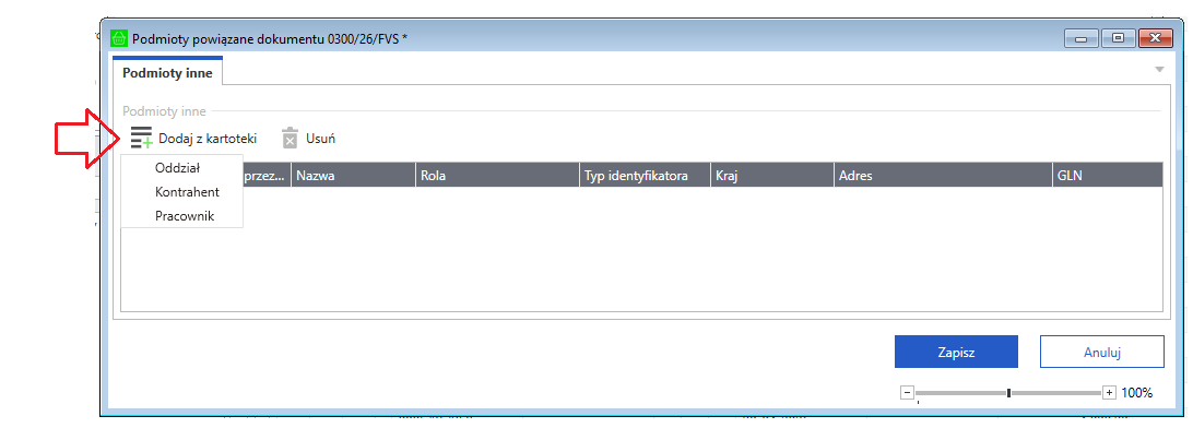 - Kliknij przycisk Dodaj z kartoteki i wybierz rodzaj dodawanego podmiotu: