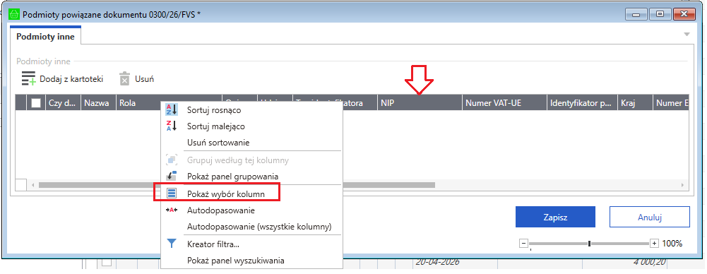Jeśli pracujesz na klasycznej formacje, kliknij prawym przyciskiem myszy na dokumencie i wybierz funkcję Podmioty powiązane KSeF (Ctrl+Shift+P).